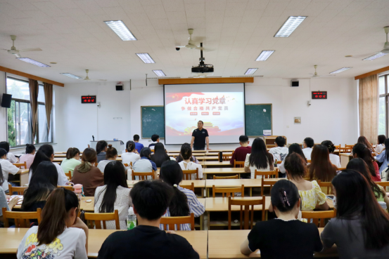 首先,沙林斌为同学们介绍了学校的党员发展流程、党组织对入党积极分子的要求、积极分子的培养考察程序。接着,沙林斌讲解了中国共产党党章的基本内容和意义,着重阐述了十九大对党章的重要修改,并结合个人经历和工作经验进行了讲解。最后,沙林斌重点讲述了习近平新时代中国特色社会主义思想、实现两个“一百年”目标和中华民族伟大复兴的中国梦等内容。