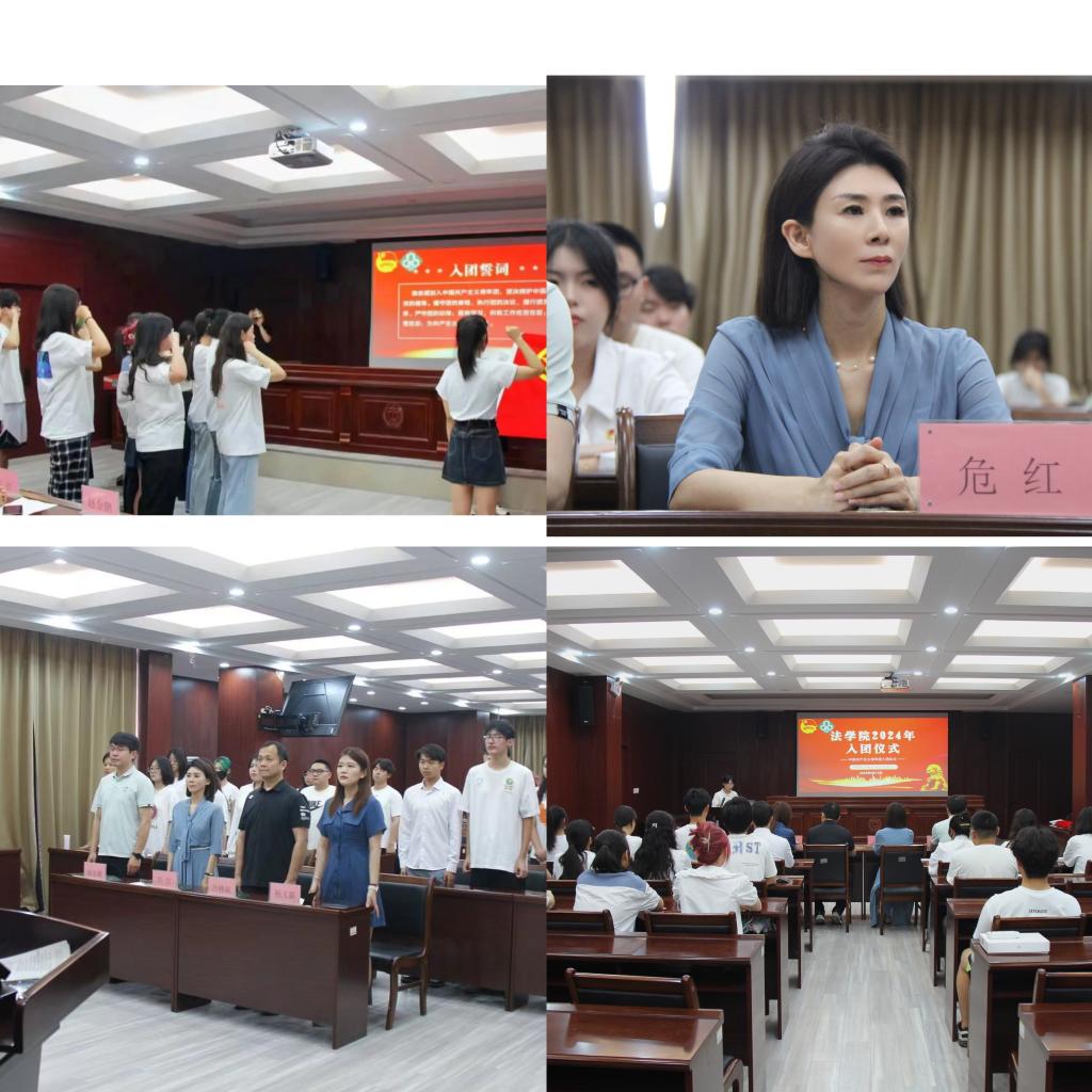 2024年新团员入团仪式在燕山校区模拟法庭顺利举行。学院党委书记危红、副书记沙林斌、学院团委书记赵金鹏、2023级辅导员杨玉霜,2024年新入团同学及部分过往入团同学代表参加仪式。