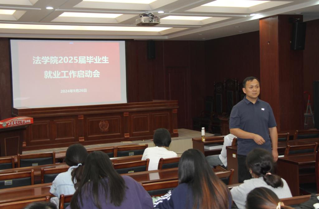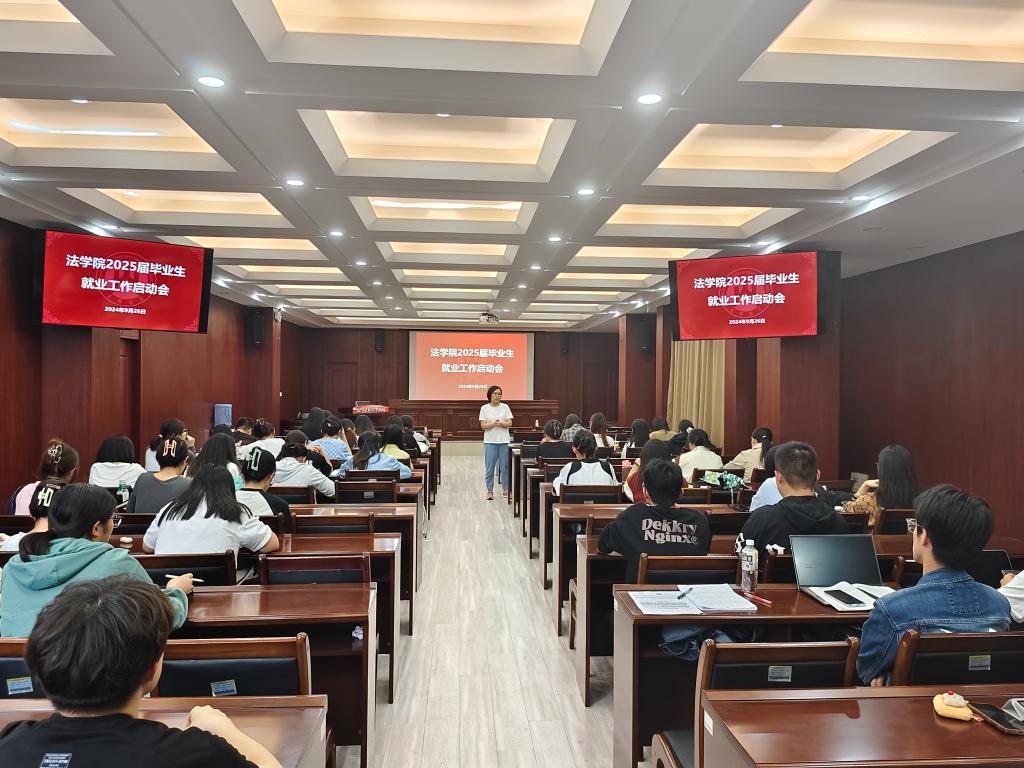 为全面贯彻落实《中共中央 国务院关于实施就业优先战略促进高质量充分就业的意见》,推动毕业生高质量充分就业。2024年9月26日下午在燕山校区模拟法庭,采取线上线下结合方式召开了脱裤吧