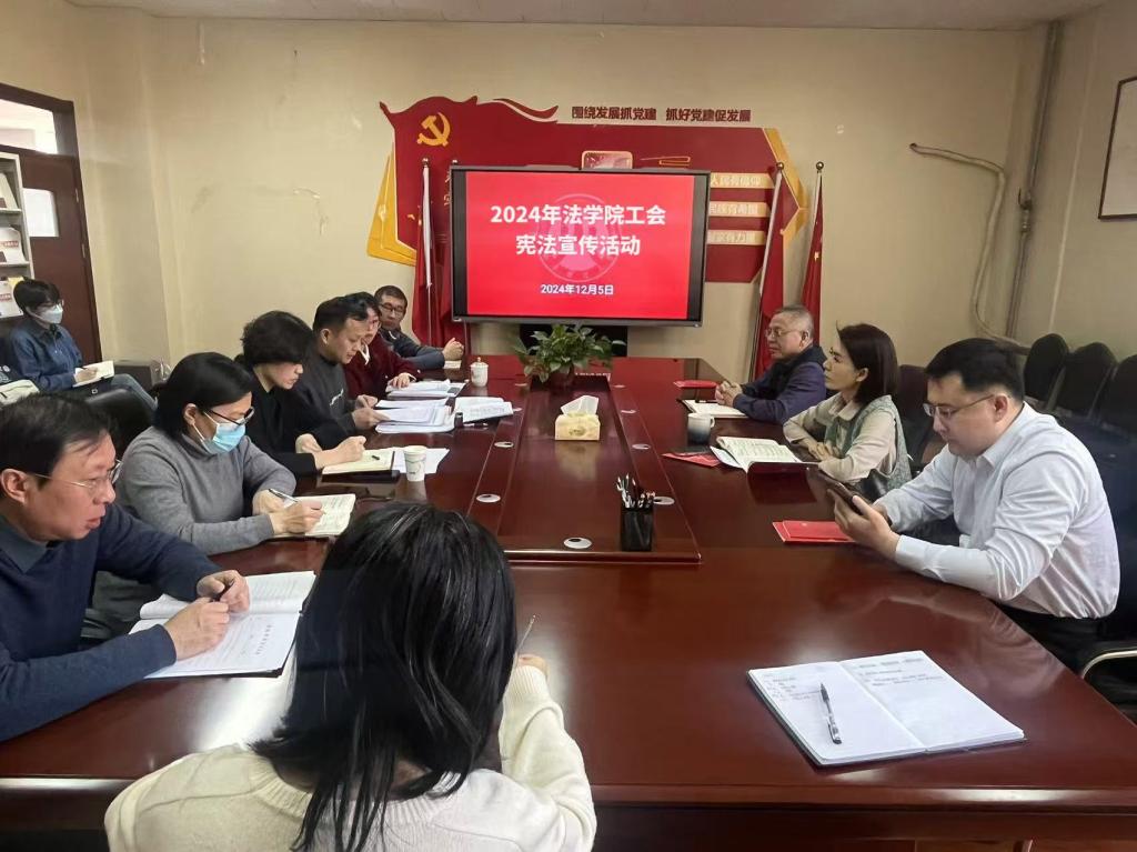 会后,各系及各办公室积极组织教职员工参加“工会服务职工法务云”线上平台的职工宪法答题活动和收看“学宪法 知宪法”公益大讲堂暨2024年公民法治素养提升活动公益视频。法律学系更是承担着本院的宪法教学任务,通过课堂及线上线下各种方式积极学习宪法、宣传宪法,让宪法不仅进课堂而且入心入脑。