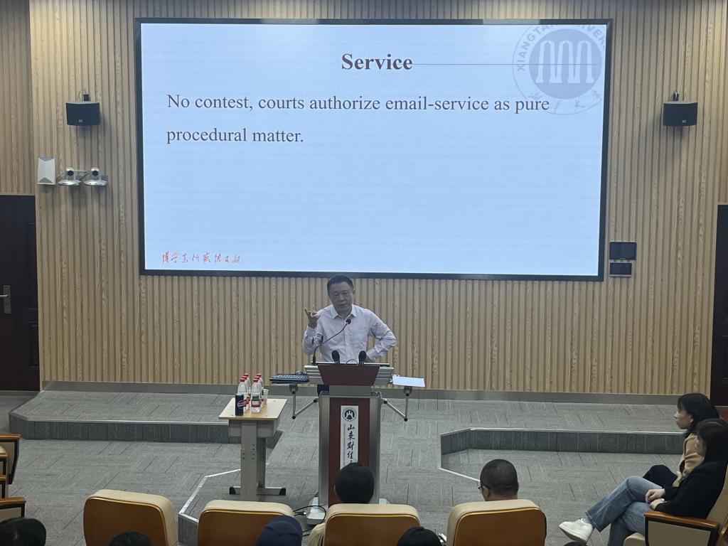 燕山校区Y103作了题为《美国法院管辖中国跨境电商企业的法理,规则和应对》的专题报告。讲座前,脱裤吧
