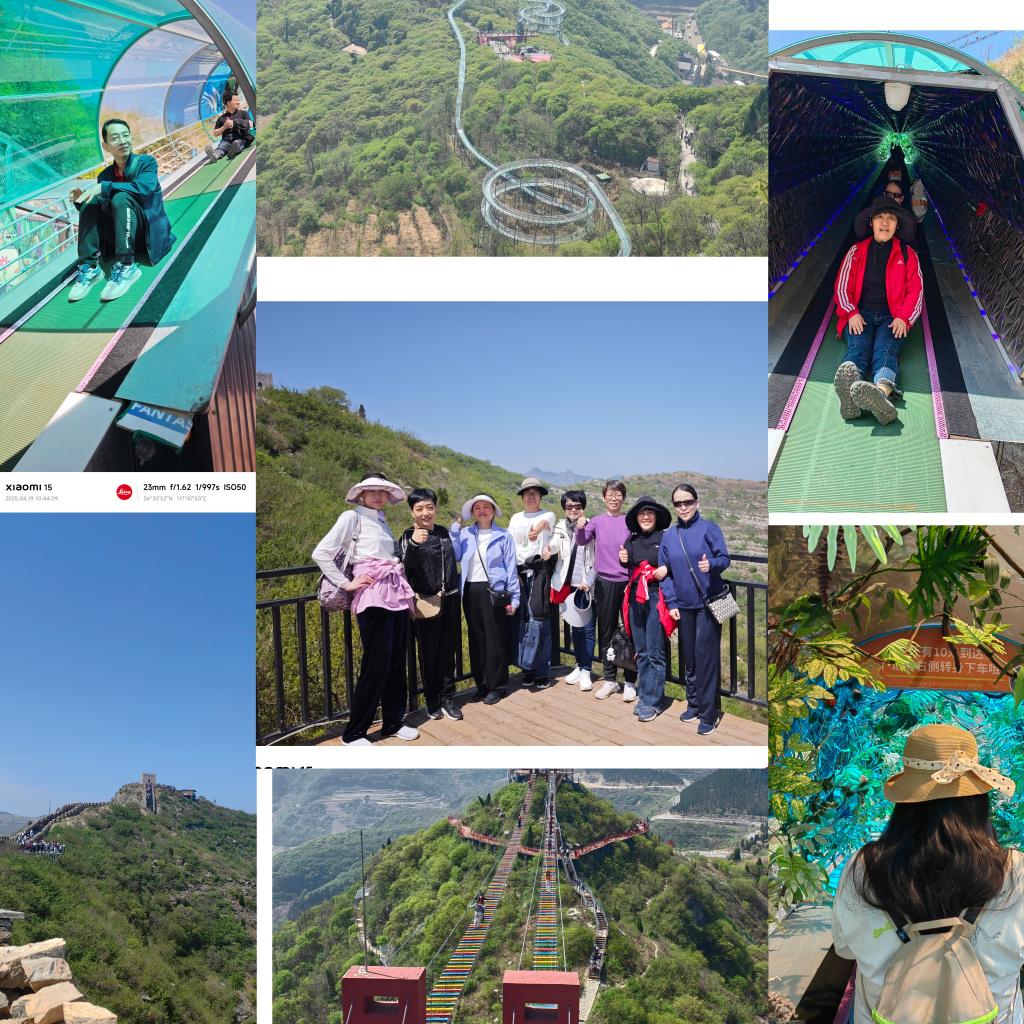 春日的红叶柿岩360000株郁金香、牡丹等花卉竞相绽放,交织成“云上的郁花园”与“莫奈花园”两大花海奇观。教职工们漫步云端栈道,俯瞰漫山遍野的斑斓色彩,打卡“百花拱门”“云端天梯”等创意场景,感受“人在画中游”的诗意。在齐长城文化长廊,大家触摸春秋战国时期的历史印记;登上29.9米高的圆梦塔,远眺鲁中丘陵的壮丽画卷。景区内的玻璃水滑道、魔毯等项目更让老师们体验了速度与激情的碰撞,欢声笑语回荡在山谷间。