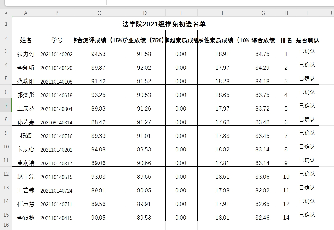 公示期7天,如有问题请在公示期内联系4506办公室刘老师。 2024.9.15