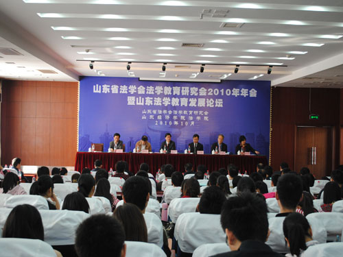 承办的山东省法学会法学教育研究会2010年会暨山东法学教育发展论坛在国际交流中心隆重召开。山东省法学会副会长陈泽沅,山东省法学会法学教育研究会会长、烟台大学校长房绍坤,秘书长、烟台大学脱裤吧
