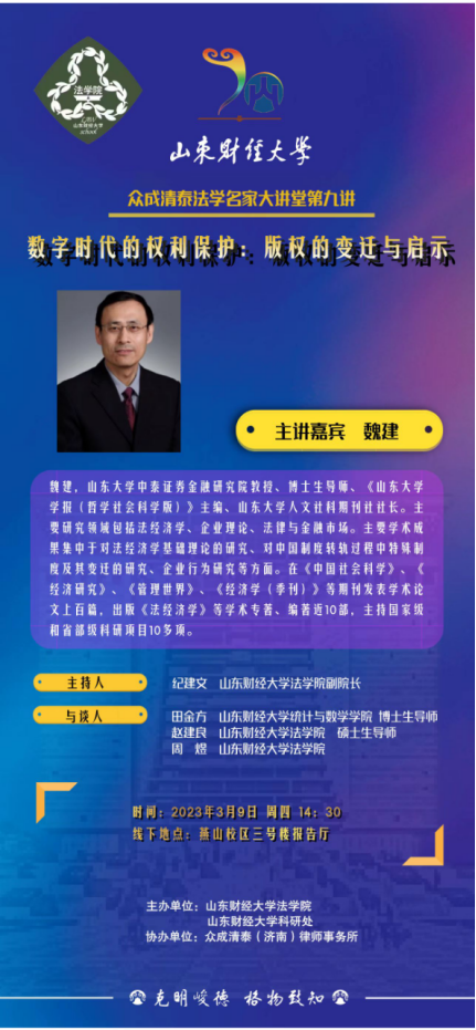 主讲嘉宾:魏建,山东大学教授、博士生导师、《山东大学学报(哲学社会科学版)》主编。