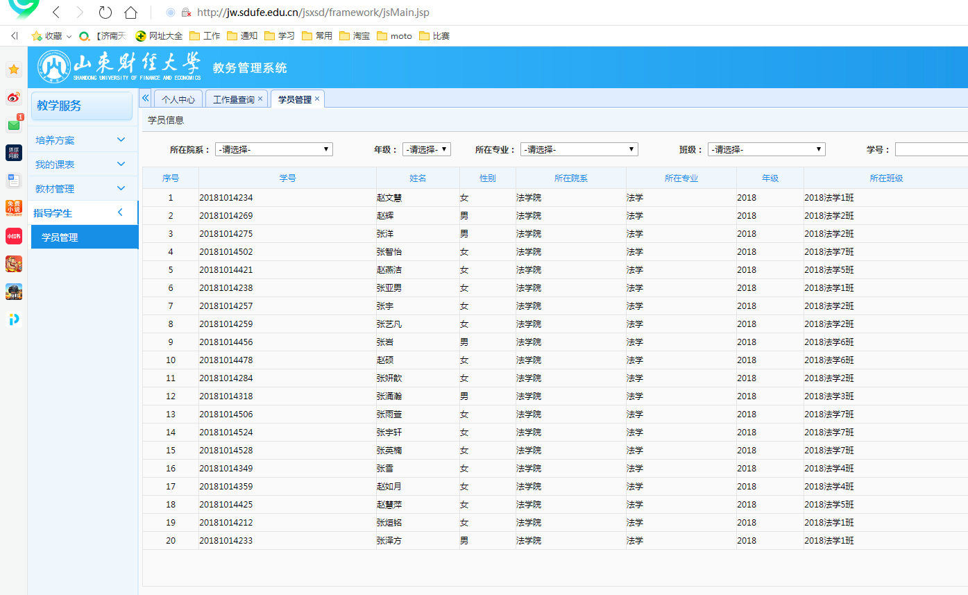 表格下载: (此表由学业导师填写,每次集中见面指导填一份并让学生都在该表签字。每学期期末结课前交两份给教学秘书存档) (每学期期末结课前,辅导员组织学生填写,由学工办相关负责老师存档) 1、学业导师如何查看指导的学生名单: 2、学业导师的职责:(详见这里: (1)导师要指导好学生选课、合理安排学习进程,帮助学生完善符合自身特点的较完整的专业知识和技能结构体系;针对免修、免听、重修、修读第二学位、提前毕业、延期毕业等给予指导。鼓励学业导师指导学生提前进行毕业论文(设计)选题、调研、实验等相关准备。 (2)导师要关心和帮助学习困难的学生。 对于毕业年级的学生,导师要对照相关培养方案(可在强智系统查询),给学习困难的学生做好学业预警,帮助他们顺利毕业。 3、学业导师工作量计算: 按照每生每学年0.5个课时标准计算课时量,课时量统一计算在每个学年的第二个学期。 4、指导方式: 采取集体指导与分散指导相结合、定期指导与不定期指导相结合的方式对学生进行指导。 (1)每学期定期集中见面指导至少2次,每学年不少于4次;学业导师每次见面集中指导后须填写《学业导师工作记录薄》一份并让所有被指导的学生在表上签字。 (2)分散指导根据具体情况实施,平均每生每学年接受指导不少于1学时,可采取电话、邮件、短信、聊天工具等灵活的方式。 5、学业导师的监督考核 脱裤吧
