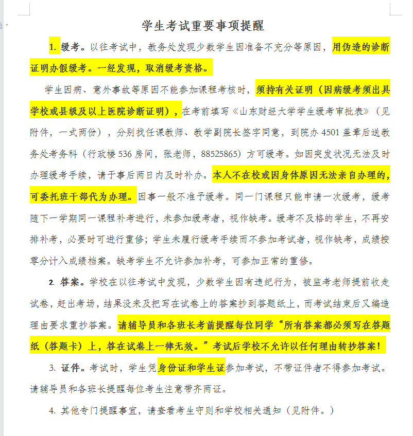 温馨提醒:开、闭卷考试均严禁学生将手机等通讯工具及具有存储功能的电子设备带入考场。 考试期间携带、使用手机等电子通讯设备一律按违纪处理。 附件下载:1、 缓考申请表.doc 2、考生守则.pdf