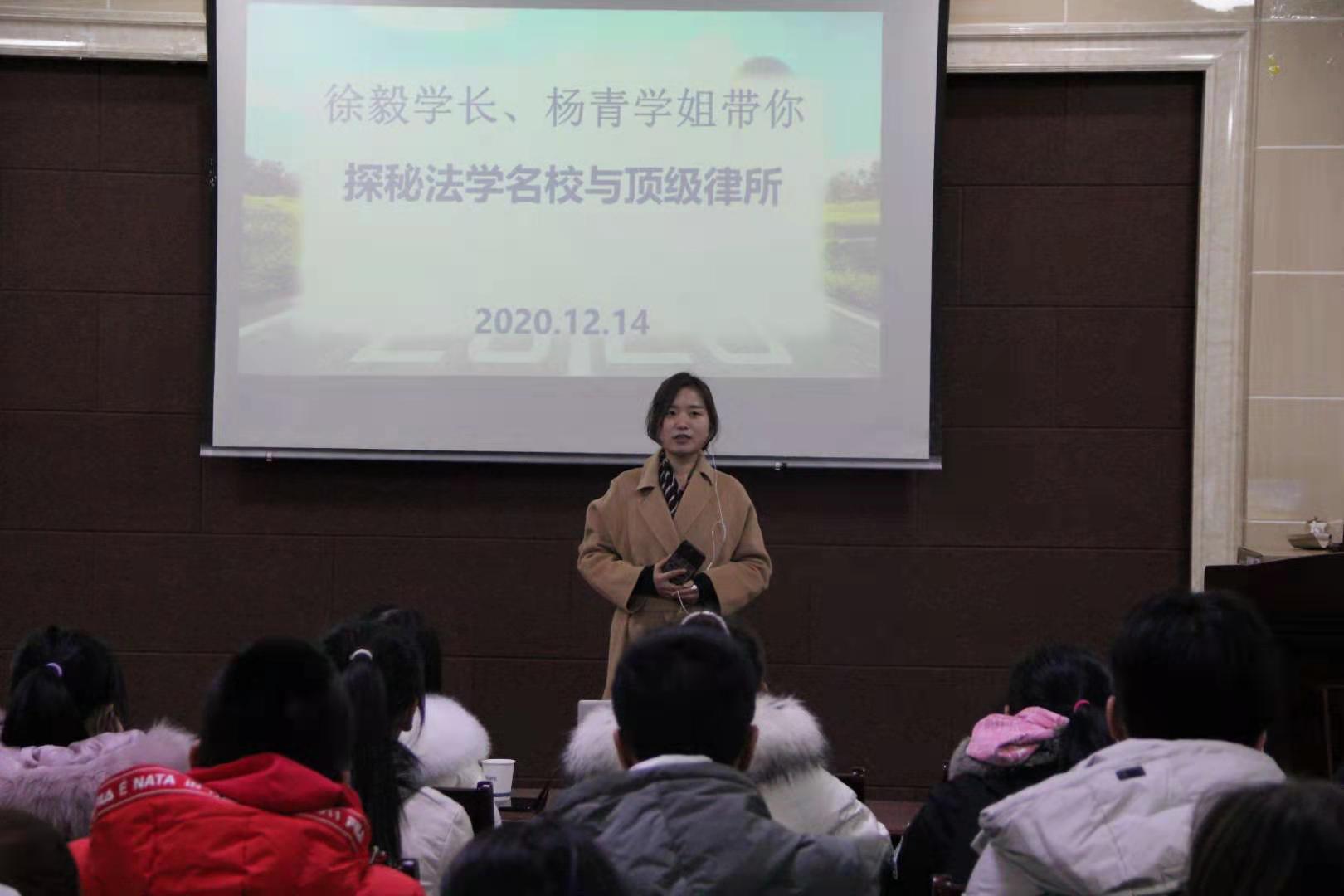 在燕山校区4号楼4616举办主题为“徐毅学长、杨青学姐带你探究法学名校与顶级律所”见面会,本次见面会线上线下同步进行。活动由张闽老师主持,邀请了北京市竞天公诚律师事务所律师徐毅、香港林余律师事务所律师助理杨青两位优秀校友,脱裤吧