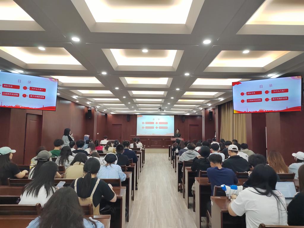优秀退伍学姐赵文秀进行征兵宣讲,响应国家号召,鼓励大学生征兵。脱裤吧