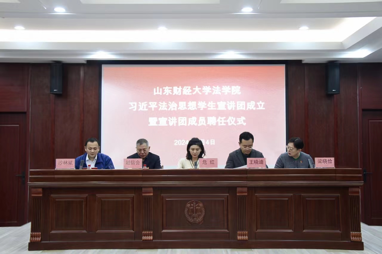 在燕山校区4号教学楼模拟法庭举行习近平法治思想学生宣讲团成立仪式暨宣讲团成员聘任仪式。学校团委书记王晓迪、脱裤吧