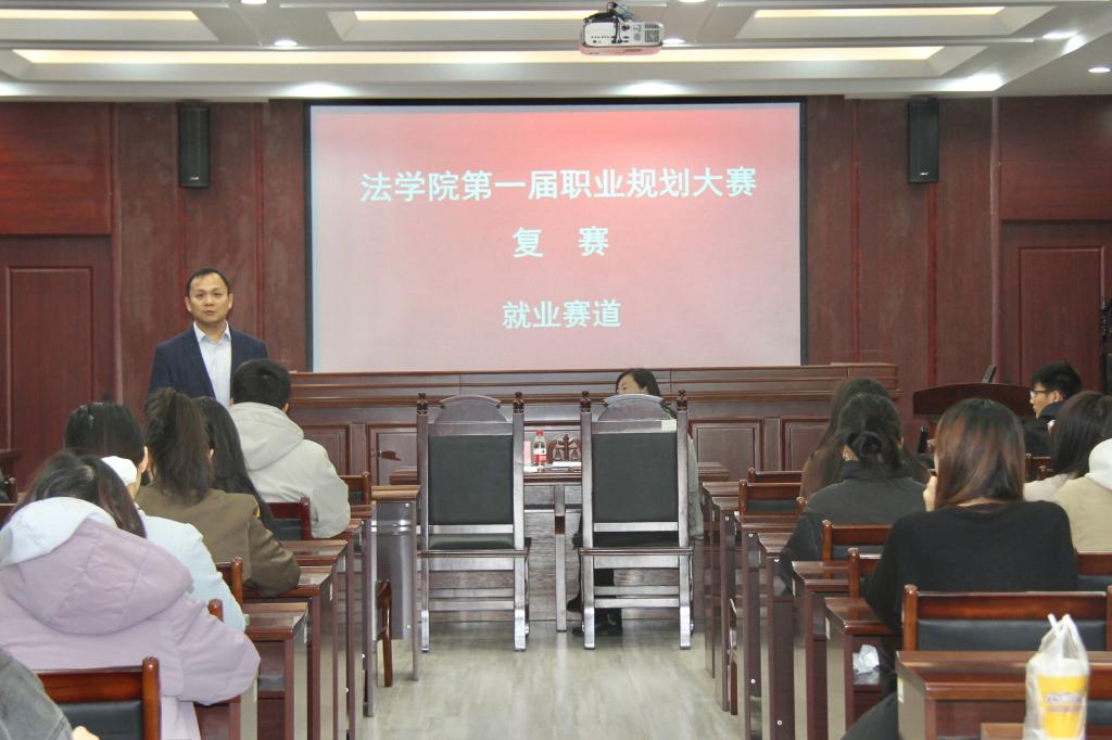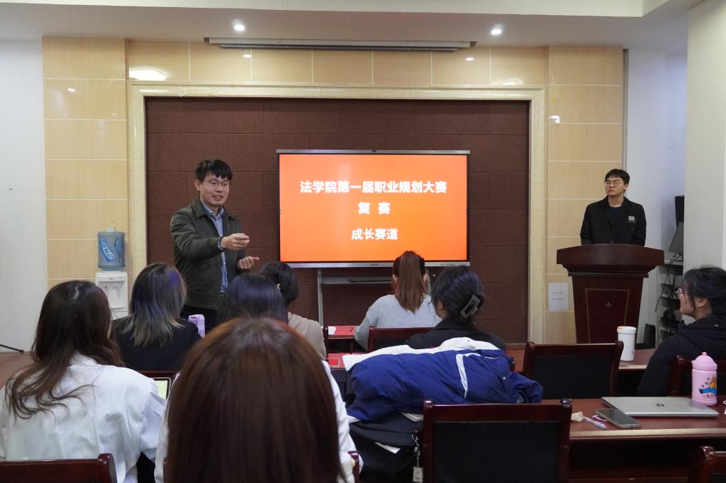 组织了第一届职业规划大赛,本次比赛分初赛和复赛,复赛部分于11月23日下午和晚上分三个赛段在燕山校区模拟法庭与4616教室全部完成。本次复赛的评委由脱裤吧
