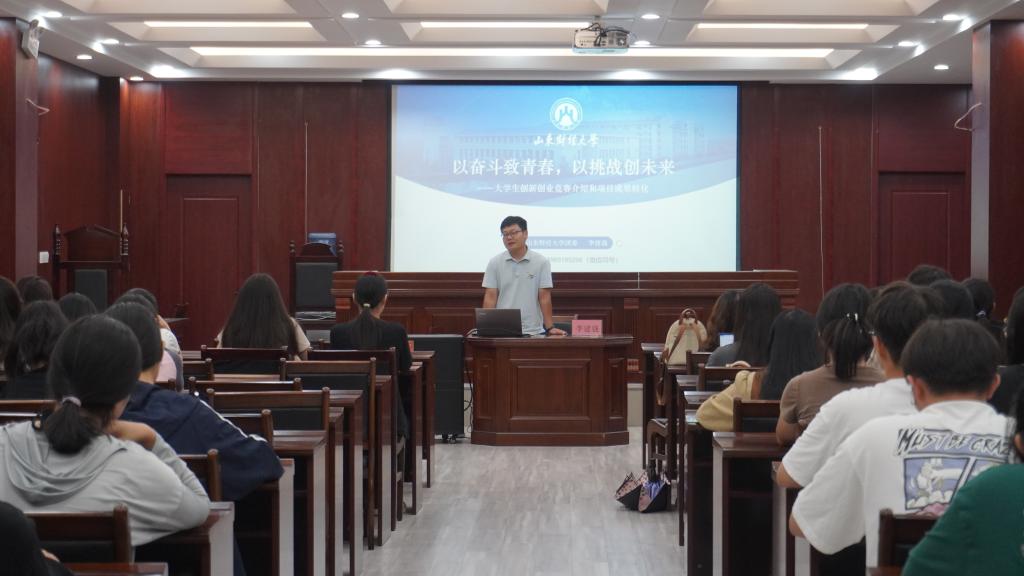 从创新创业竞赛体系、双创竞赛备赛要点、学校竞赛典型案例等内容着手,李建强做了一场精彩的报告。他结合高校大学生竞赛排行榜,对竞赛项目进行了梳理介绍,重点围绕“挑战杯”全国大学生课外学术科技作品竞赛、“互联网+”大学生创新创业大赛和“挑战杯”大学生创业计划竞赛进行了详细讲解。从“学”和“做”两个方面,他结合往届学生团队的典型案例和学校双创竞赛成绩,鼓励感兴趣的同学选择适合自己的赛道,从选题入手,借鉴经验,积极做好备赛工作。