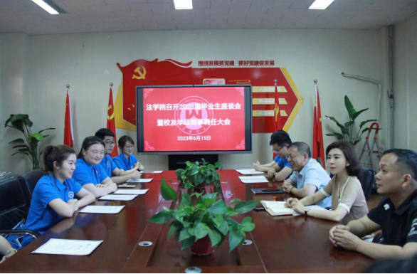 在燕山校区4508会议室举行2023届毕业生座谈会暨校友年级理事聘任大会。党委书记危红,院长赵信会,党委副书记沙林斌及2023届各班毕业生代表参加本次座谈会,会议由沙林斌主持。