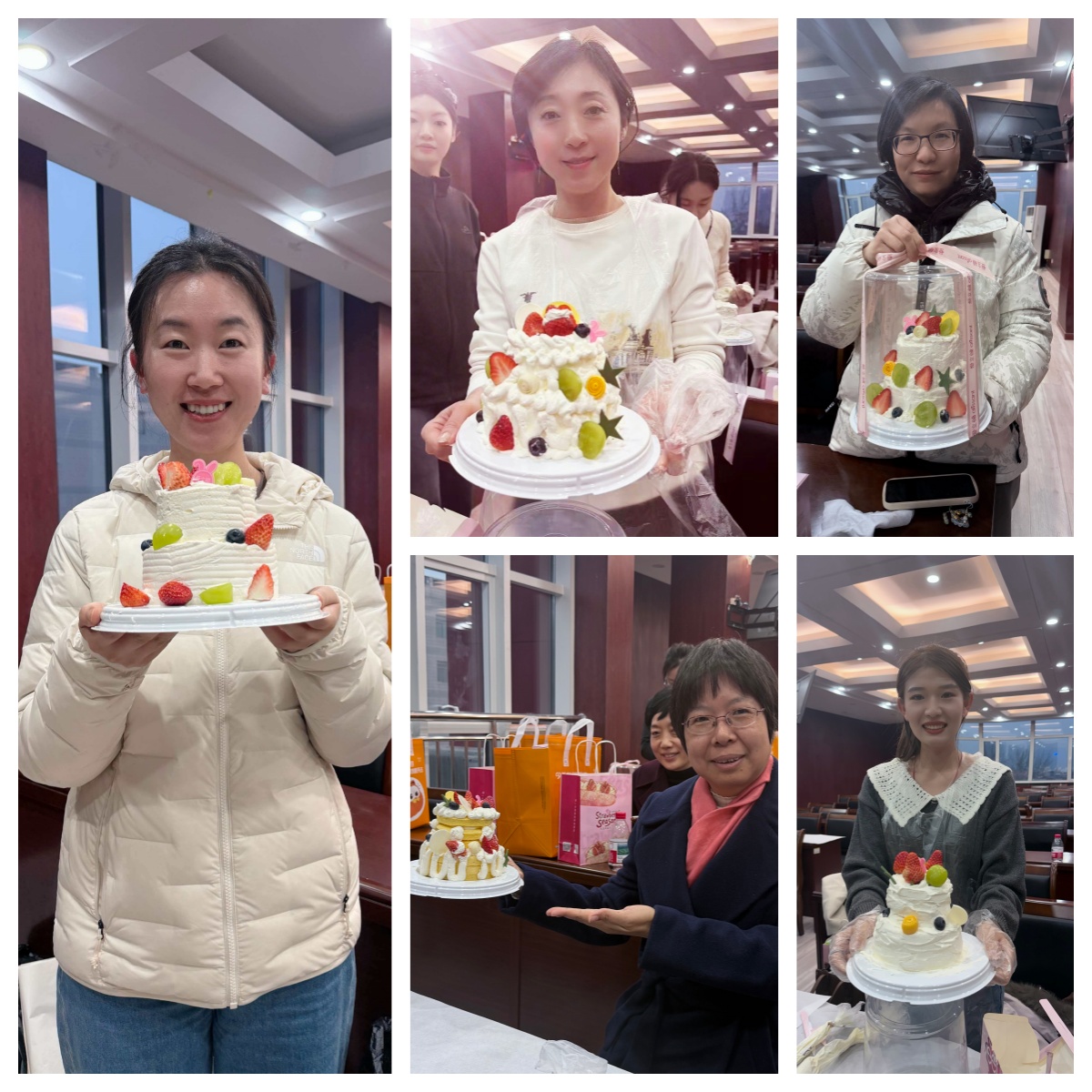 活动现场布置温馨,工具材料一应俱全。学院工会特别邀请了专业烘焙师进行全程指导。平日里严谨治学的老师们纷纷化身“烘焙达人”,沉浸在创作的乐趣中。大家发挥巧思,精心设计,认真涂抹奶油、裱花装饰,现场甜香四溢,欢声笑语不断。老师们互相交流技巧,分享心得,现场气氛热烈而融洽。活动最后,大家展示自己的劳动成果并合影留念,记录下这份独特的节日记忆。小小的蛋糕,承载着节日的祝福,也凝聚了手作的温度与集体的欢乐。